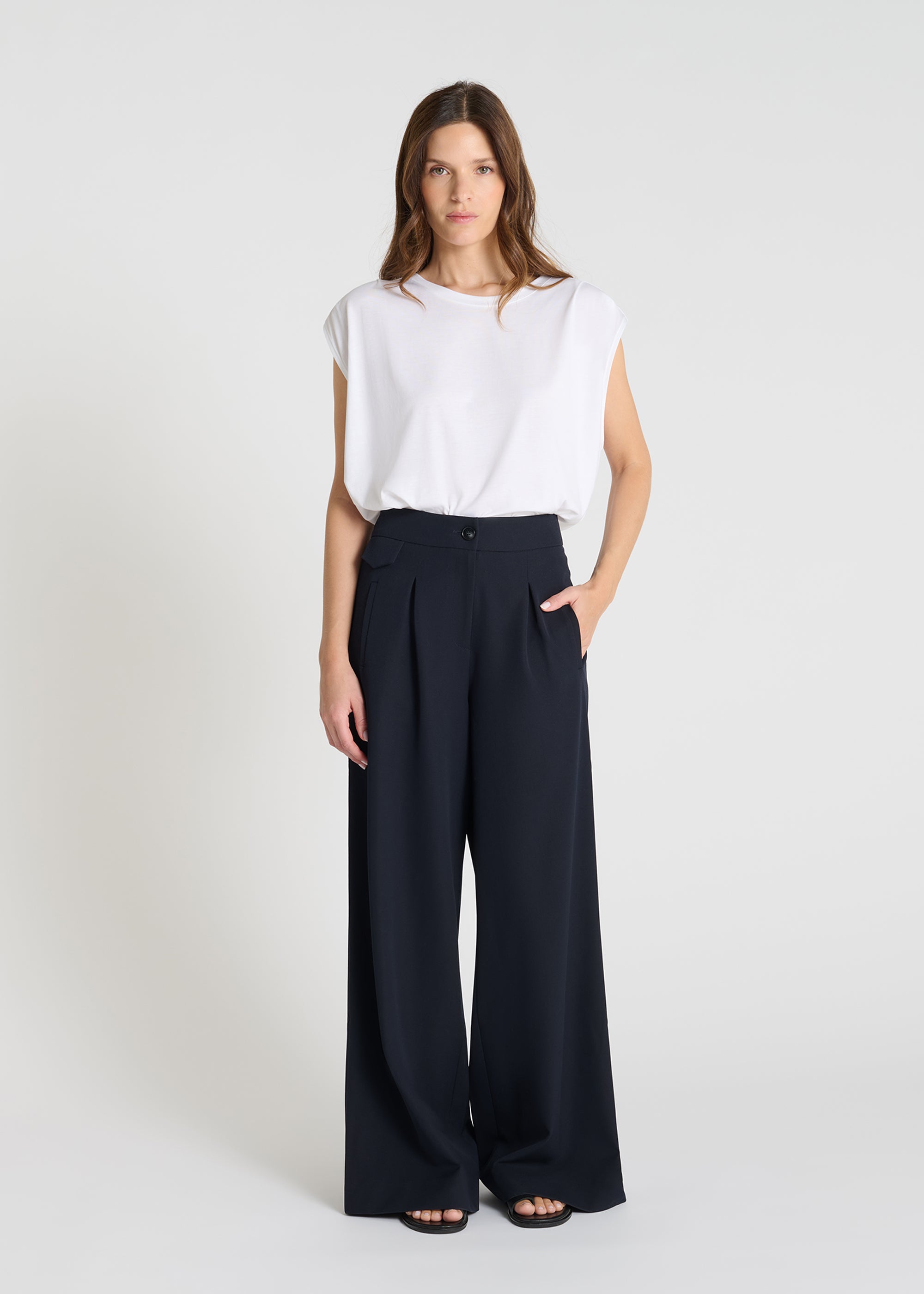 Confectionné dans une matière tailleur au maintien parfait, Aruni combine confort et allure moderne. Une pièce essentielle pour celles qui recherchent un pantalon femme élégant, structuré et facile à porter au quotidien.