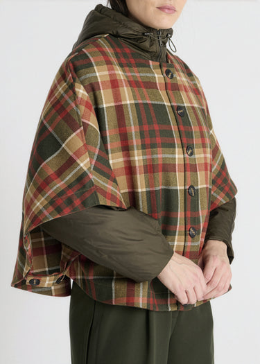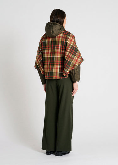 La cape Cholena se distingue par son motif tartan au caractère affirmé et son allure chaleureuse. Confectionnée en laine, elle offre une matière enveloppante et confortable, idéale pour la mi-saison comme pour les journées plus fraîches.