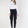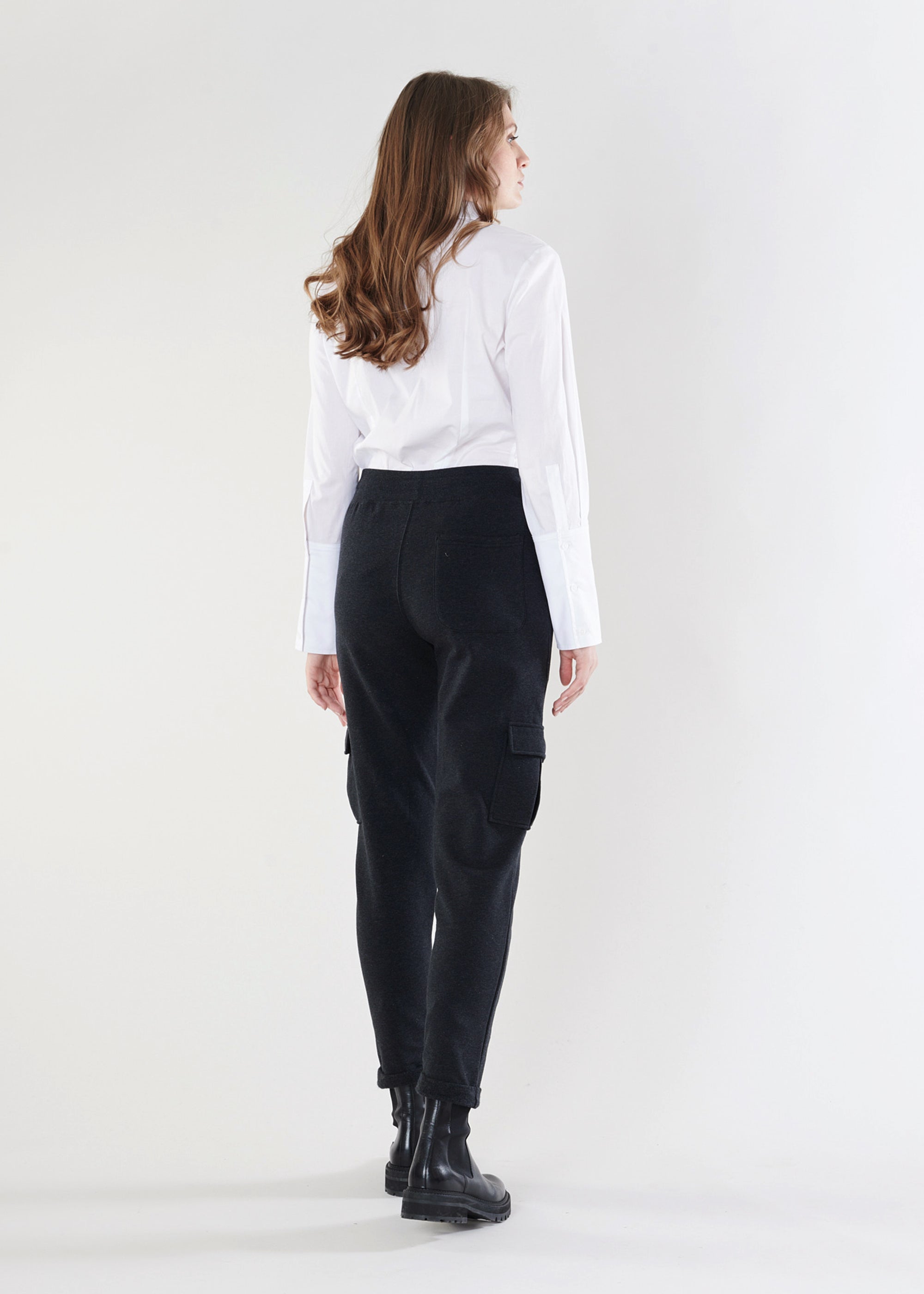Le pantalon Grigoripo, confectionné dans un molleton doux et confortable, se distingue par sa couleur noire, élégante et intemporelle, qui s’adapte à toutes les saisons et toutes les envies. La ceinture élastiquée avec lien ajustable assure un ajustement sur mesure, tandis que les poches italiennes à l’avant sont complétées par deux poches placées au niveau du genou, sur chaque jambe, pour une touche utilitaire discrète et graphique. Avec sa base droite, le pantalon Grigoripo accompagne tous les styles. Il se porte aussi bien avec une chemise pour une allure citadine soignée, qu’avec un sweat pour un look décontracté mais stylé.