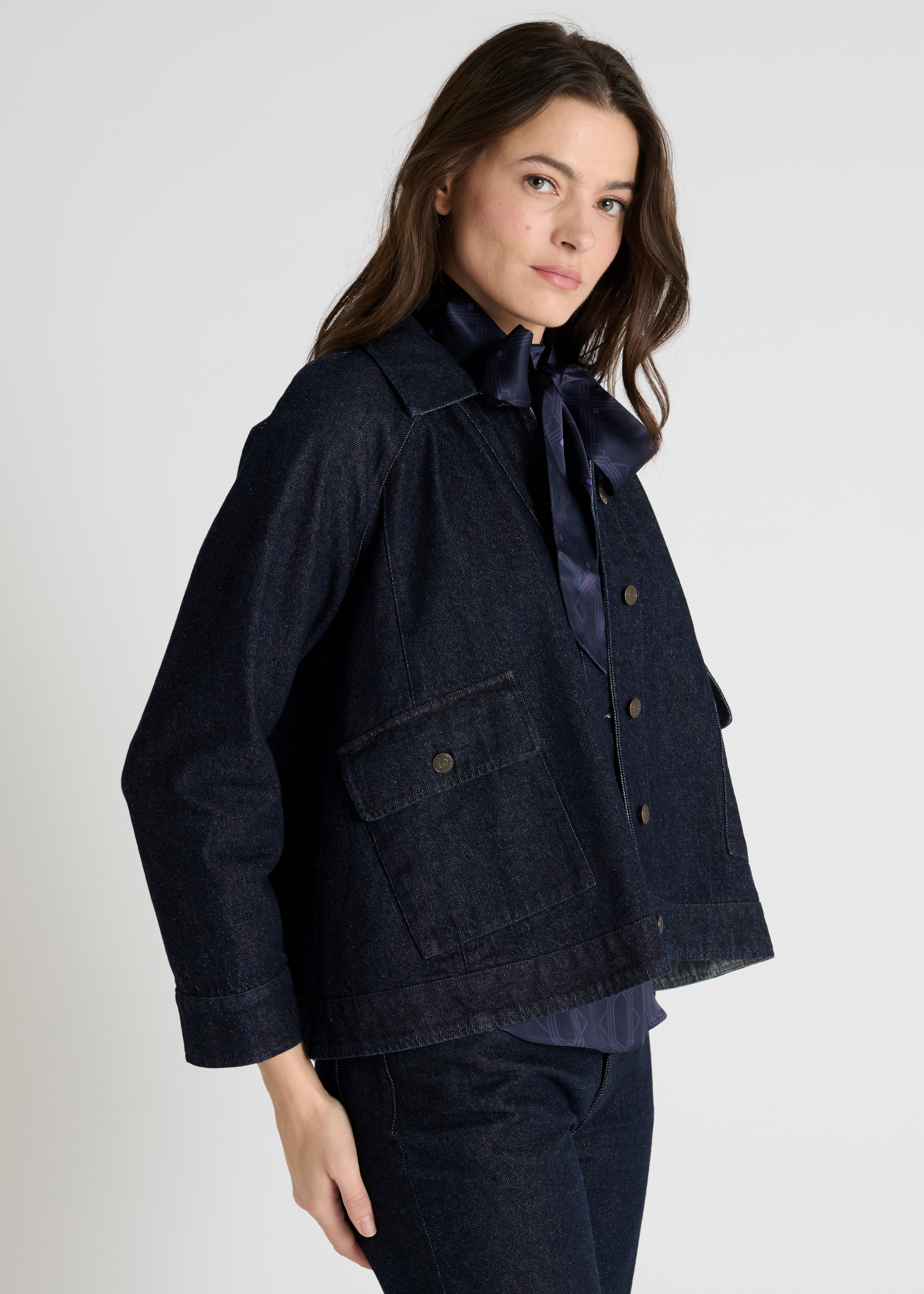 La veste Manco revisite le vestiaire denim avec une touche contemporaine et féminine.