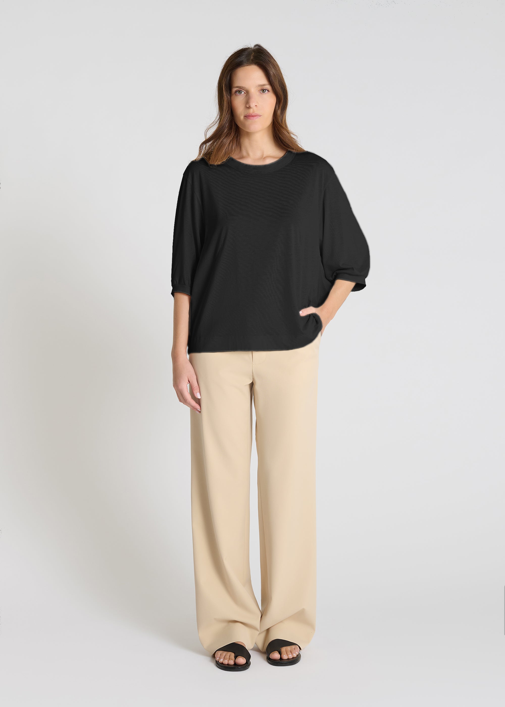 The Colchique t-shirt is made from lyocell jersey, a soft and fluid fabric that's comfortable for everyday wear. Its batwing sleeves provide ease and a relaxed look, while the round neckline balances the silhouette with understated elegance. The straight cut moves naturally with you without restricting your movement.