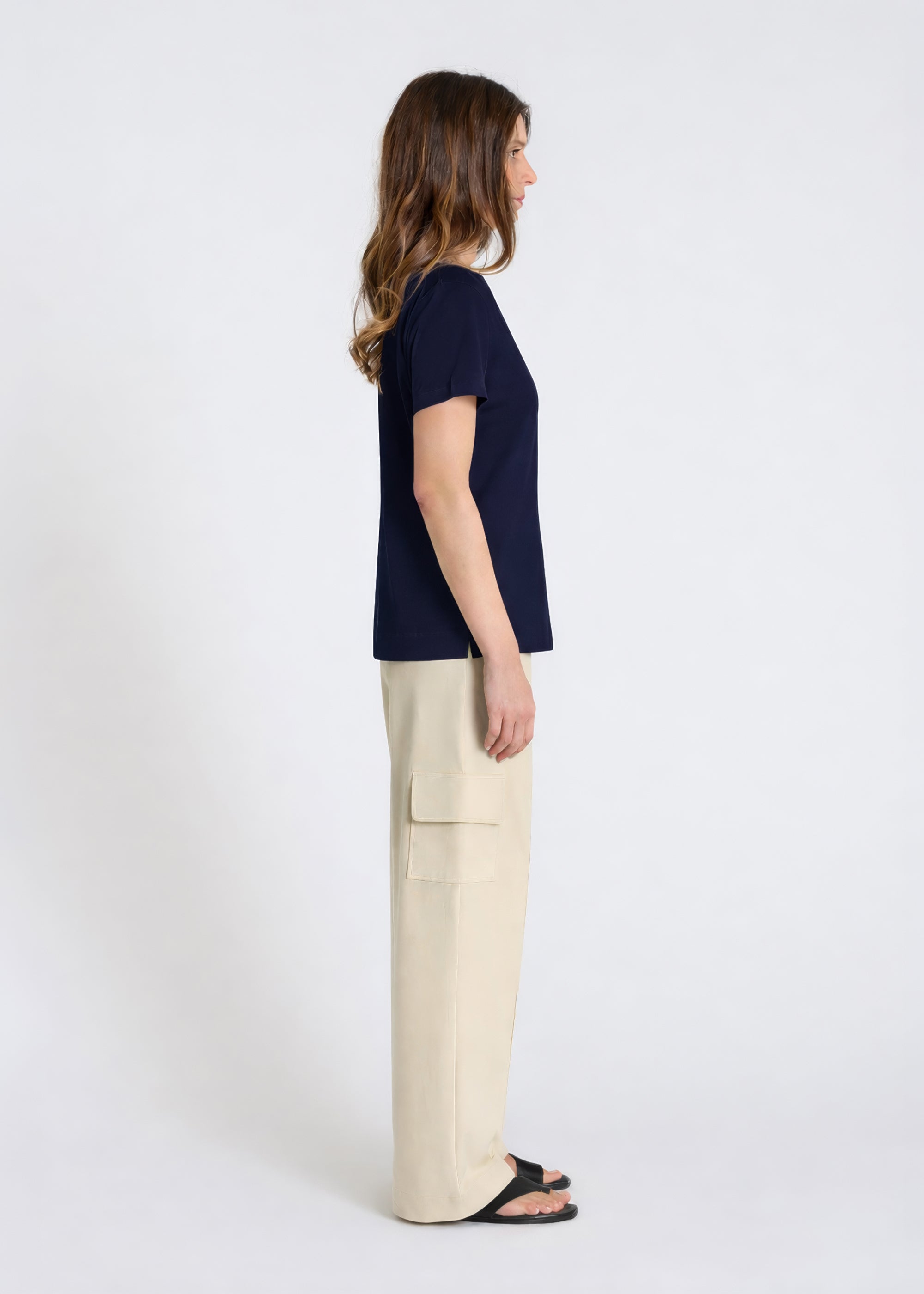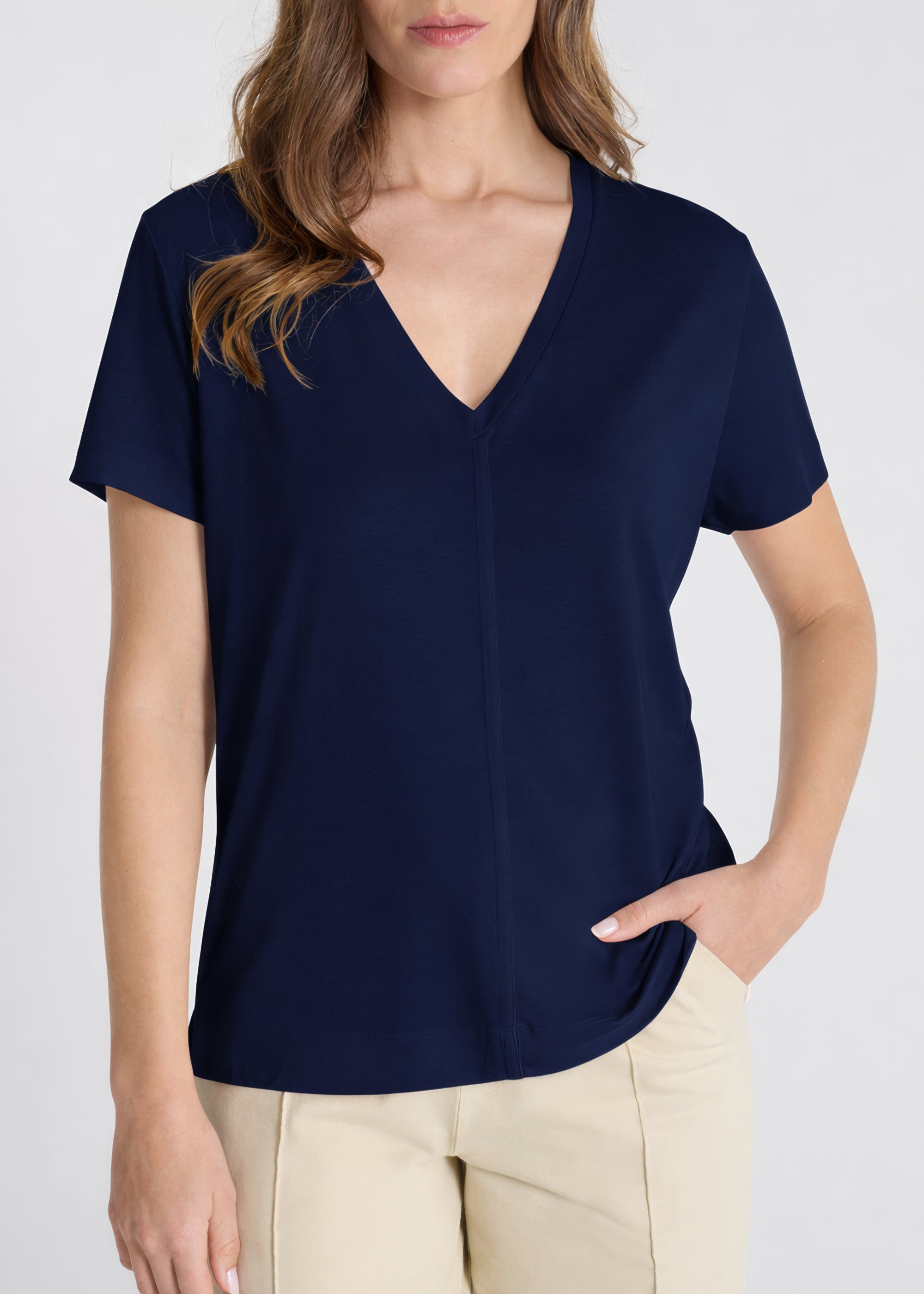 Designed to flatter all body types and suit every moment of the day, the Emilio N t-shirt offers a subtle and modern style. It's crafted from lyocell cotton jersey, a soft fabric that combines comfort with a flawless fit. The V-neck adds a touch of elegance, while the discreet seams at the front and back subtly structure the silhouette. Short sleeves and a straight cut with side slits create a fluid and controlled drape.
