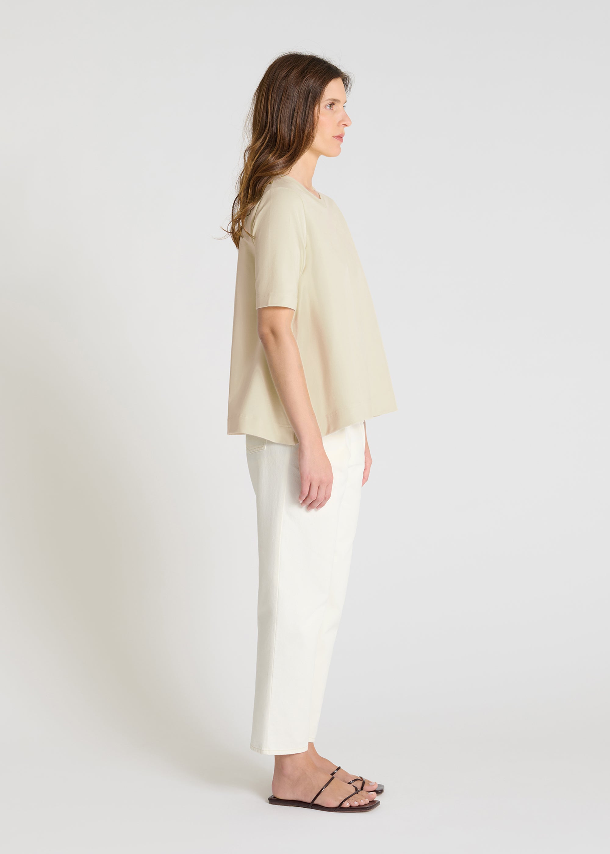 Made from soft and comfortable fleece, this short-sleeved sweatshirt features a flared silhouette that offers ease and a beautiful drape. The ribbed crew neck adds structure while remaining easy to wear. The short sleeves enhance its relaxed look, ideal for the mid-season. A simple and effective piece, designed to accompany you effortlessly every day.