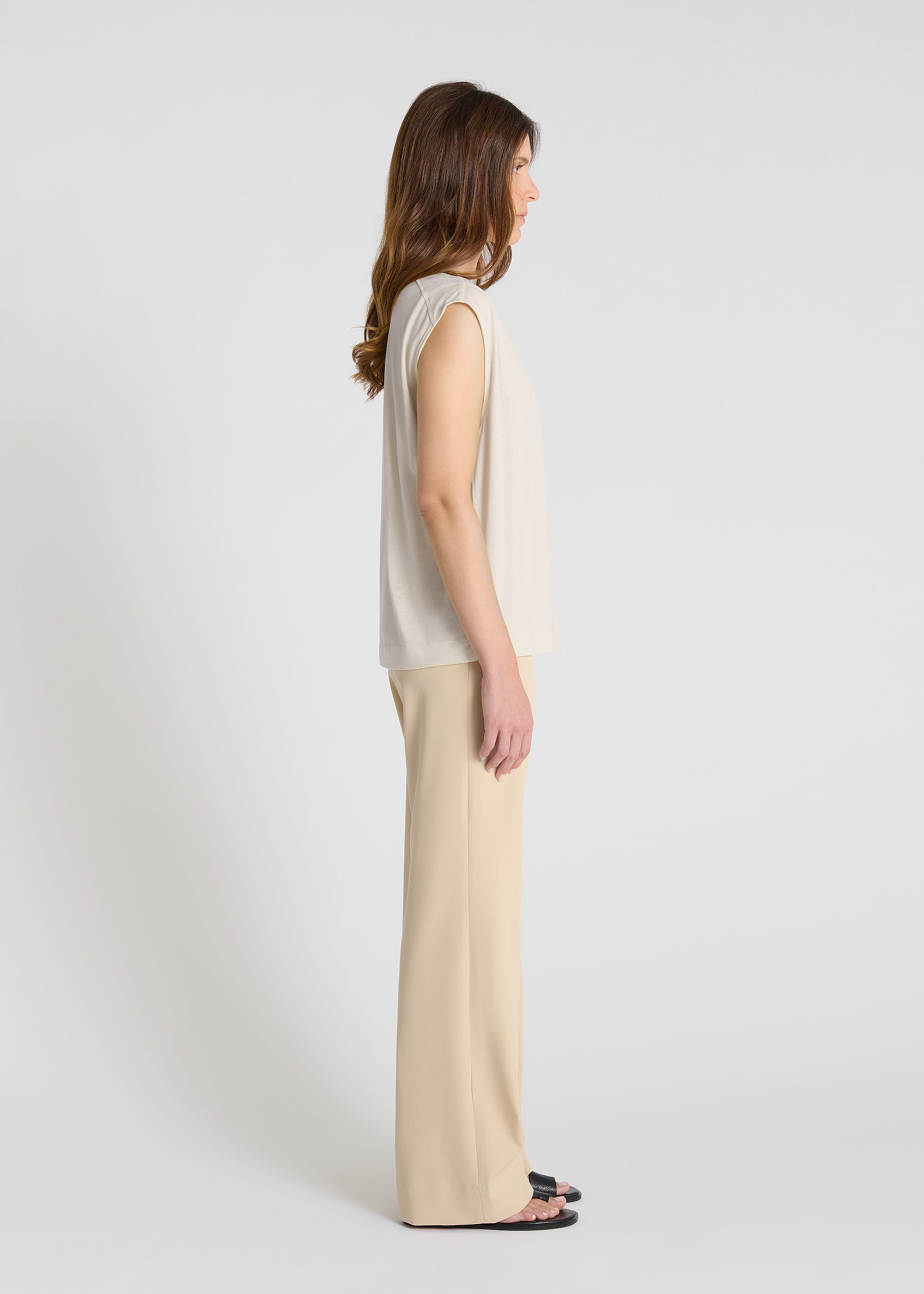 The Krish T-shirt combines the lightness of lyocell cotton jersey with a straight, relaxed fit, perfect for an effortless style. Its round neck and sleeveless design create a clean look, while the shoulder yoke and side slits add a subtly structured touch.