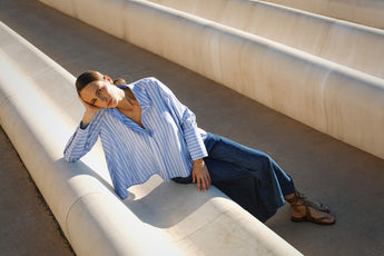 Cette saison, la femme Hana San s’imprègne des lumières chaudes d’un coucher de soleil marseillais. Entre bleu profond, rouge carmin et nuances terracotta, elle incarne une élégance libre et solaire.