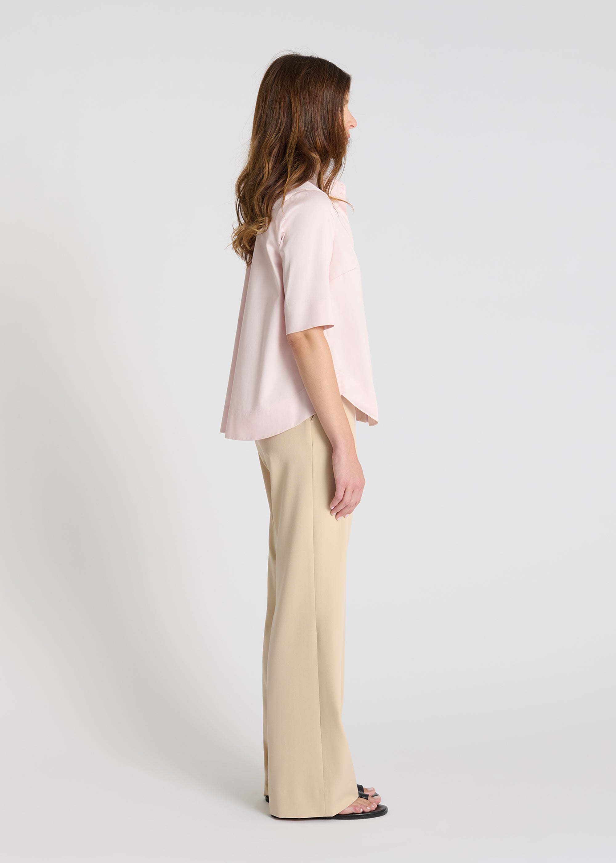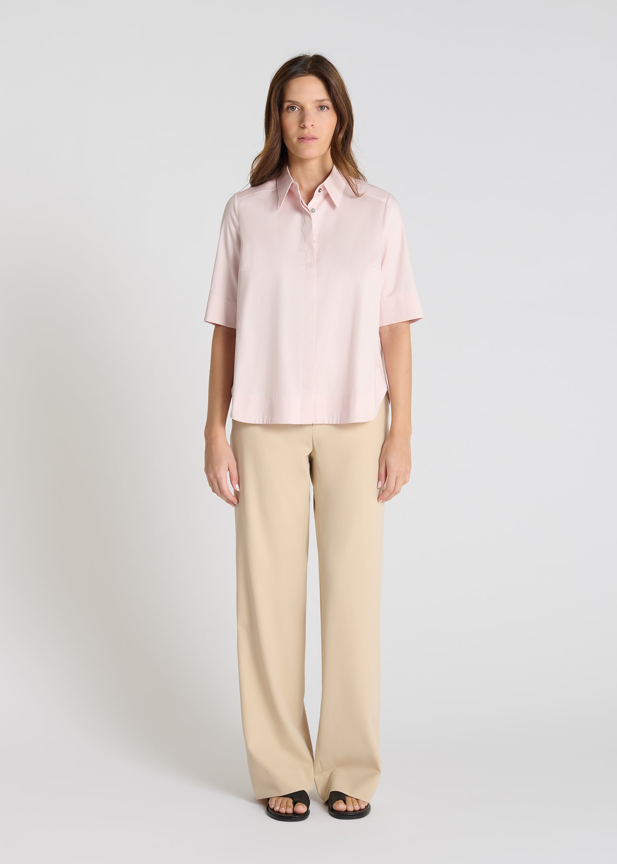 A back yoke adds structure and creates a flattering silhouette. Its flowing cut and short sleeves make it an easy-to-wear shirt, suitable for both everyday wear and more formal occasions.