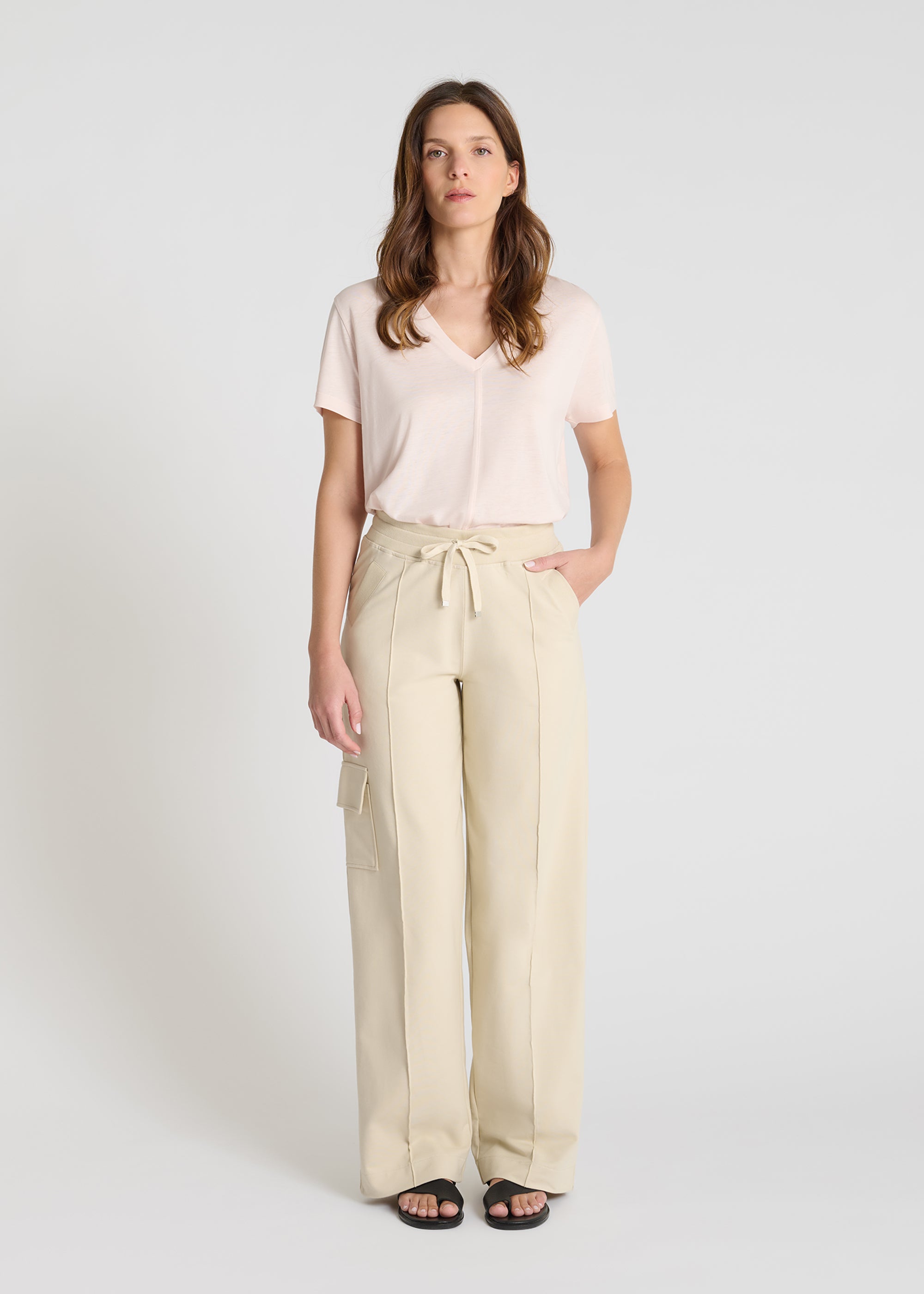 The Jivo women's fleece pants combine comfort and style in a wide, contemporary cut. Made from soft fleece fabric, they gently and warmly envelop the body while maintaining a polished look. The elasticated waistband with an adjustable drawstring ensures a comfortable fit. A functional pocket positioned at the mid-leg adds a modern and casual detail. Finally, the straight hem gives the pants a clean finish, perfect for everyday wear or a stylish weekend.
