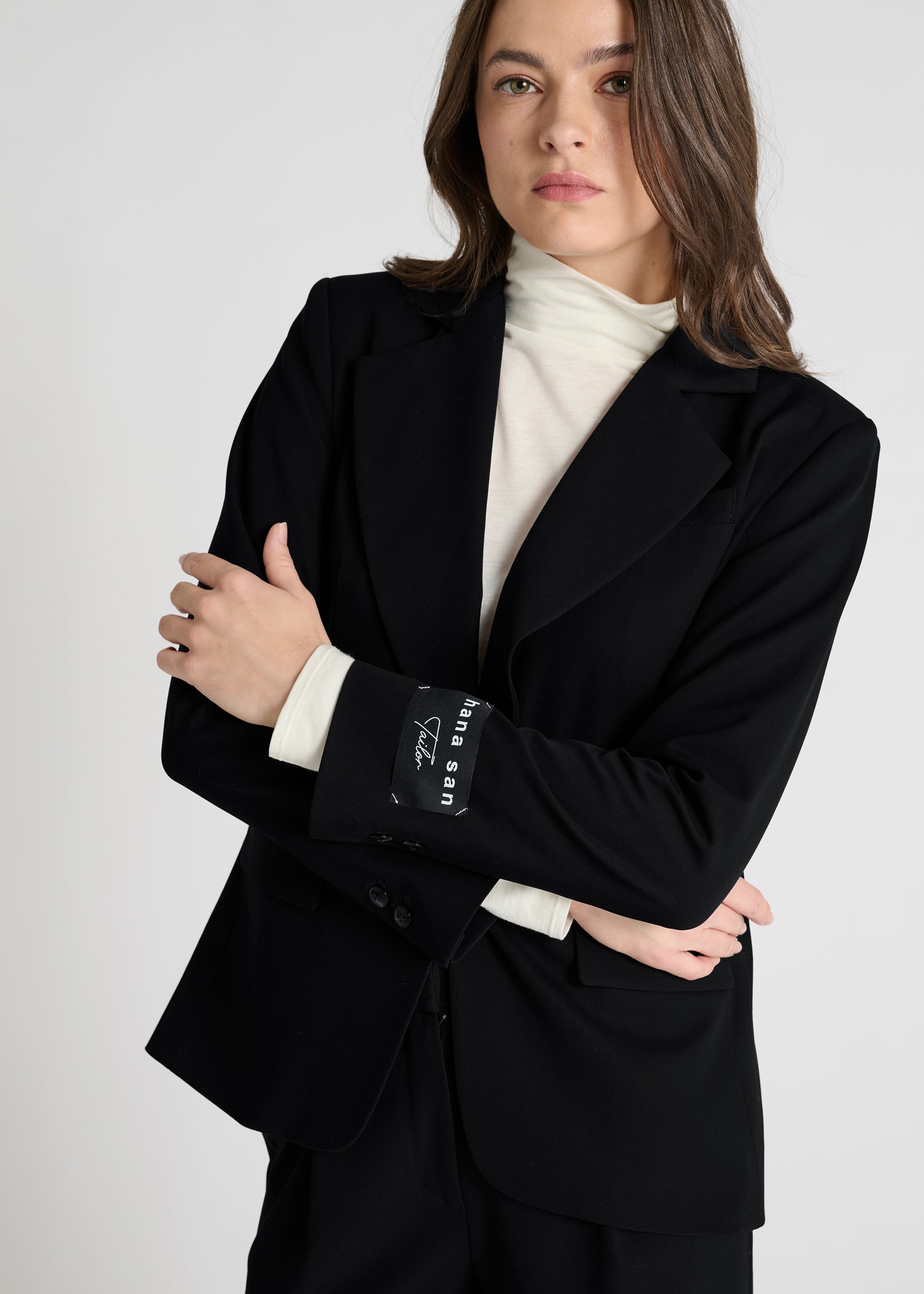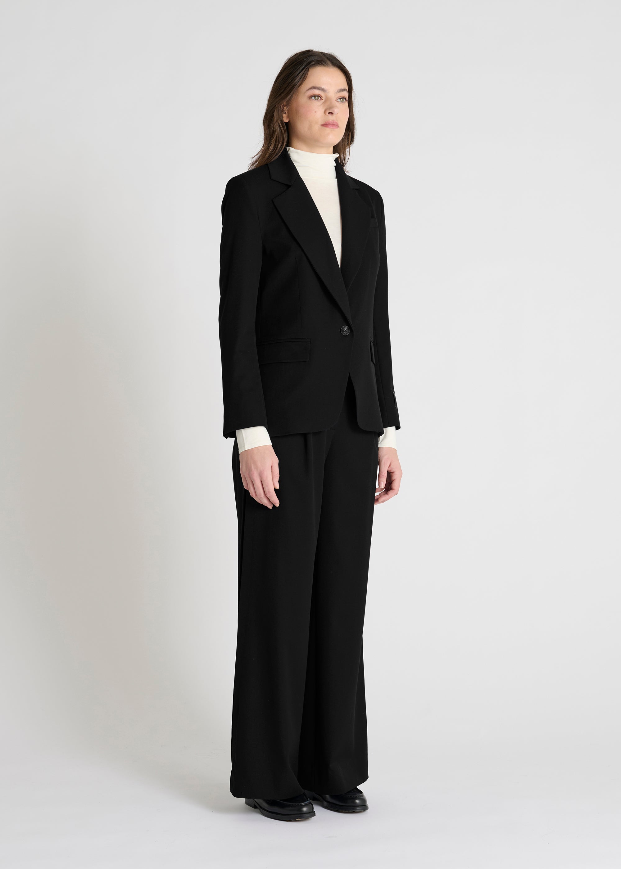 Laissez-vous séduire par la veste blazer Aponi, une pièce en matière tailleur de haute qualité, pensée pour la femme chic et élégante. Proposée dans un coloris noir profond, cette veste blazer se distingue par son col fermé par un bouton en corozo, apportant une touche naturelle et raffinée. Les poches passepoilées à la taille ajoutent une finition soignée, tandis qu’une poche discrète sur la poitrine renforce l’allure sophistiquée du modèle. Les manches longues dessinent une silhouette élégante, complétée par une base droite et une fente dans le dos pour un tombé impeccable. La veste blazer Aponi se porte aussi bien au quotidien qu’en version plus audacieuse, sans rien dessous pour une soirée ou un événement. Une pièce polyvalente, à associer avec un pantalon tailleur ou une jupe, selon vos envies.